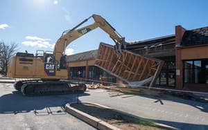 Vacant stores in the Shops at Rockvale in East Lampeter Township are being demolished to make way for a redevelopment project that will eventually add 504 apartments.